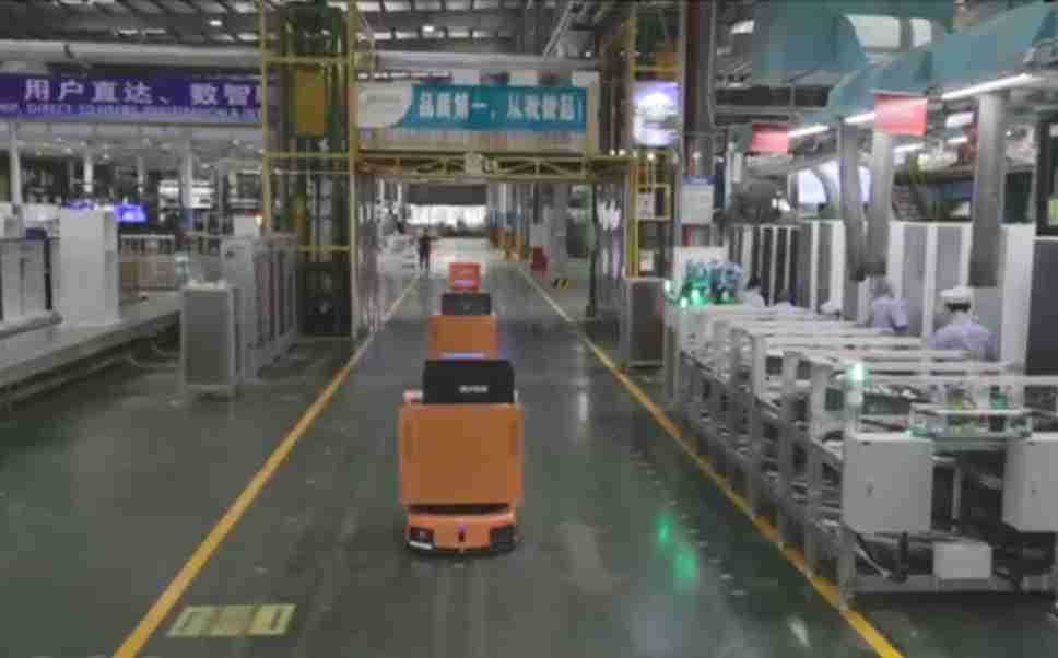 为车载冰箱物流配送打造的智能解决方案,,包含产中物流通过潜伏举升AMR搬运至线边,,,产后成品物流智能仓储,,流程包含产中物流智能齐套入库,,线边安灯叫料AMR智能配送至线边,,,成品入库、、出库,,,,通过无人堆高车机器人,,,,智能仓储管理替代人工作业管理,,,,实现更高存储、、更高效率、、更具柔性化的解决方案。。。。