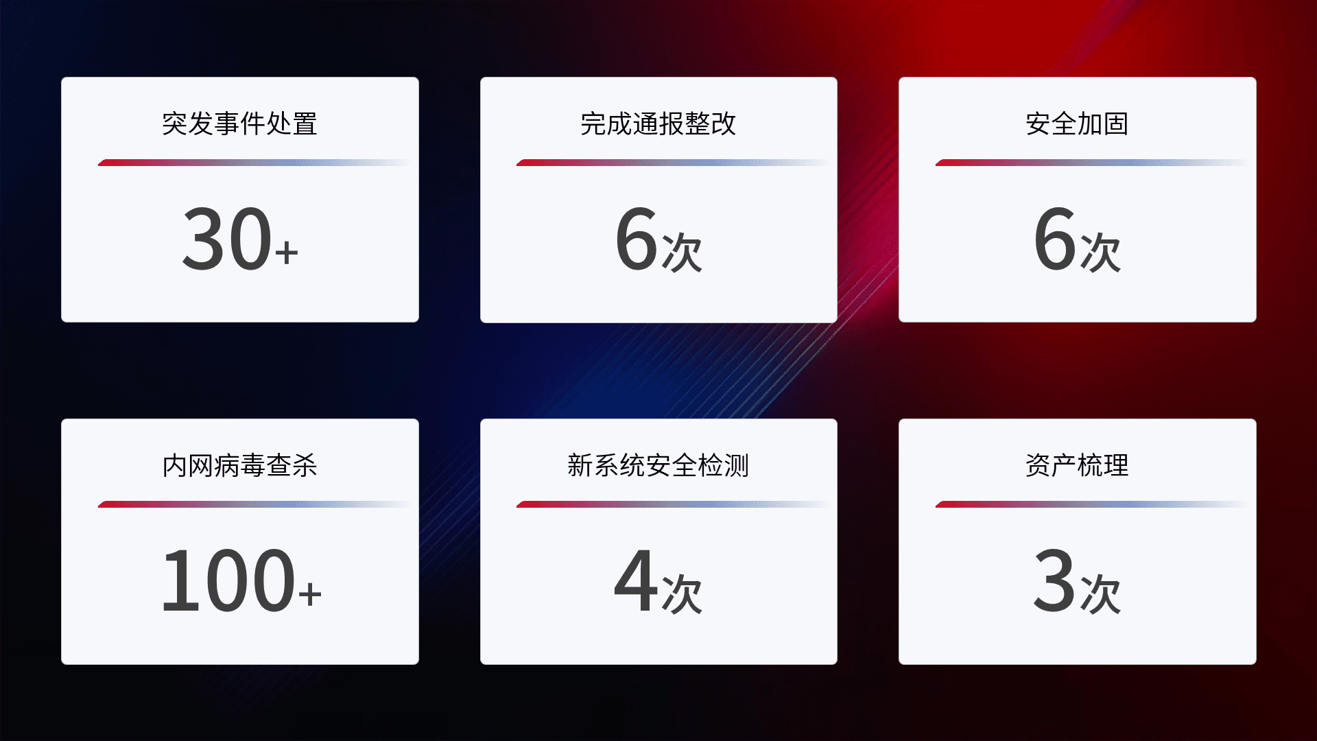 网络安全加固与风险管理:通过技术加固手段,,,,如加强区域隔离,,缩减攻击内网横向移动的范围;优化现有网络安全管理制度,,降低网络威胁暴露面,,减少被黑客攻击的可能性。。